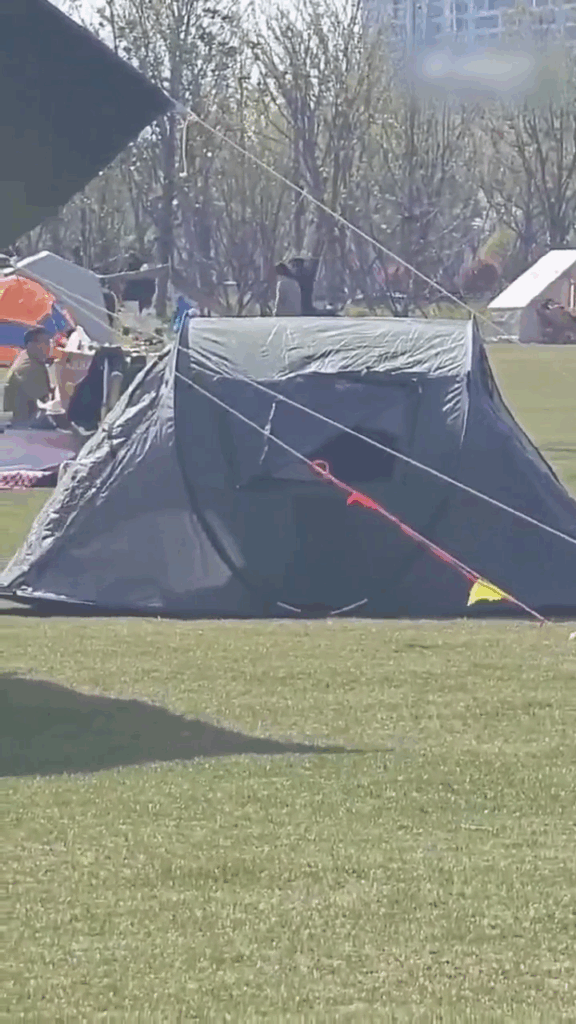 春天来临,动物们也进入了交配季节。一年之计在于春,勇敢的情侣们纷纷开启了“玩乐模式”。在公园里,一对情侣搭起帐篷露营,甚至将路人视为他们游戏的一部分,玩起了野战,真是令人惊叹的胆量。
