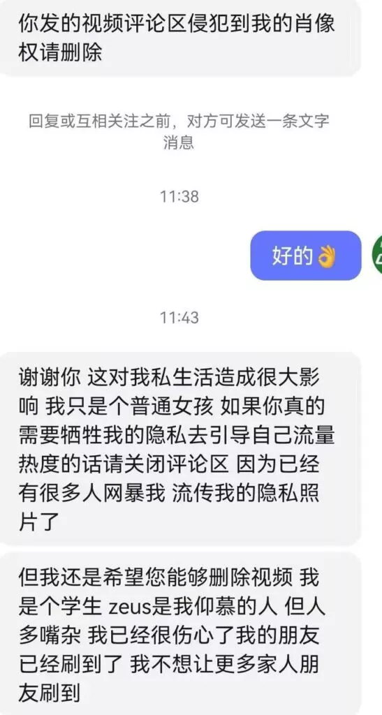 前职业《反恐精英:全球攻势》(CSGO)选手Zeus在其粉丝群中分享了一段与一位21岁上海女孩约会的视频。这位女孩是一名大学生,但随后被曝光她实际上还有一位19岁的男朋友。此外,Zeus本人也已婚。