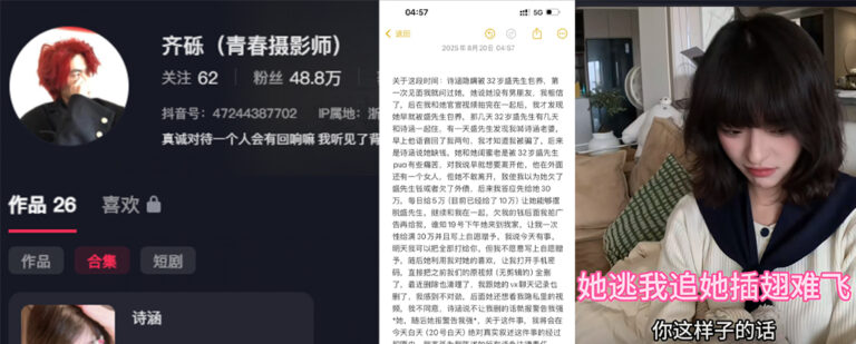 闻着伤心,听者流泪,抖音第一网红cp组合“清纯摄影师”,以真实情侣齐砾和诗涵的日常分享毫无剧本走红,女友诗涵的清纯和男主齐砾的真诚更是让人羡慕,没想到的是,在俩人官宣没多久,女友诗涵却被曝出私底下早已为被一名32岁男子长期包养。