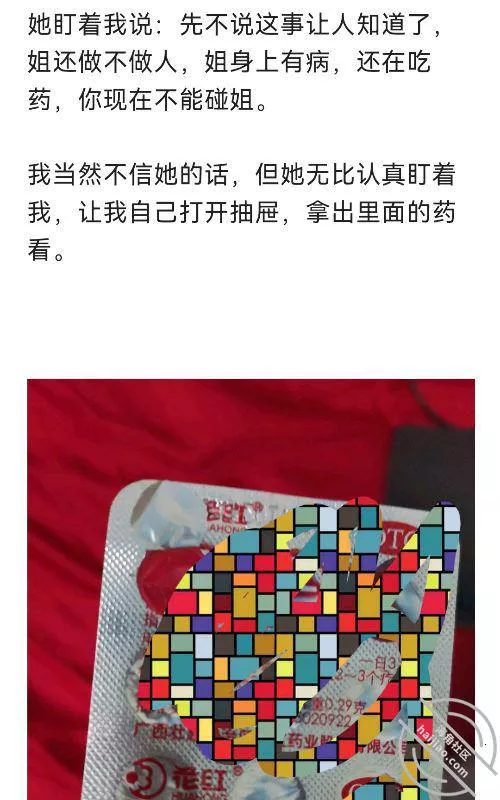 她叫一声骂我:你要死啊,摸你妹啊,我直接动强把姐姐内裤扯了下来,她意识到我来真的了,就一直推我。我铁了心要把她给Cao了,她说啥我也不理。我体重比她重多了,她奈何不了我,看挣扎不掉,无奈说我答应你,你先让我起来,我怕是她故意的想跑,就赖着不走,把自己裤子脱的只剩内裤。她盯着我说:先不说这事让人知道了,姐还做不做人,姐身上有病,还在吃药,你现在不能碰姐。我当然不信她的话,但她无比认真盯着我,让我自己打开抽屉,拿出里面的看。