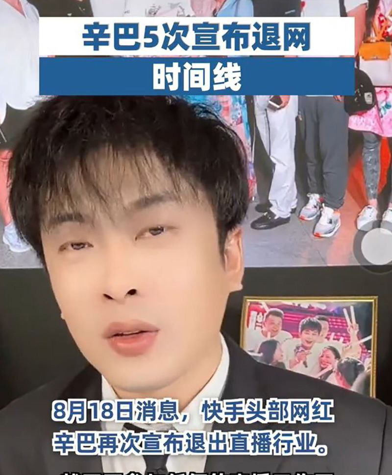 据报道,快手平台上拥有亿万粉丝的顶级带货主播辛巴,五年内已六度宣布退网。自所谓的“堕胎卫生间事件”曝光后,有消息称他疑似出海躲避风波,另有传闻称其在杭州因涉嫖娼被警方传讯调查。