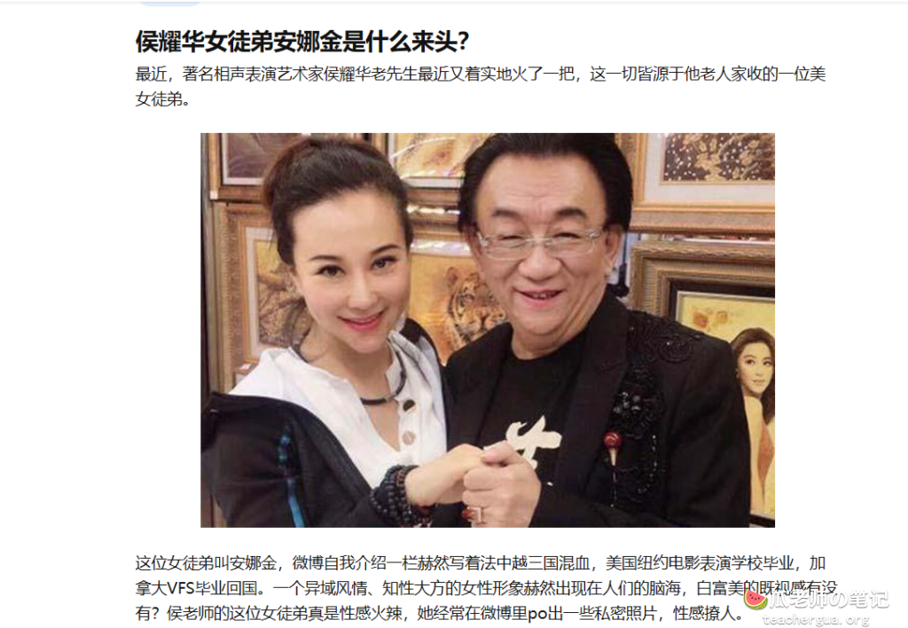 安娜金和侯耀华疑似做i视频流出,自称是侯耀华的大徒弟,究竟是什么来头?